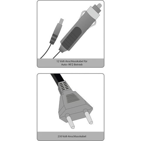 - Compatibilidade: 12V (automóvel) / 230V (tomada elétrica)