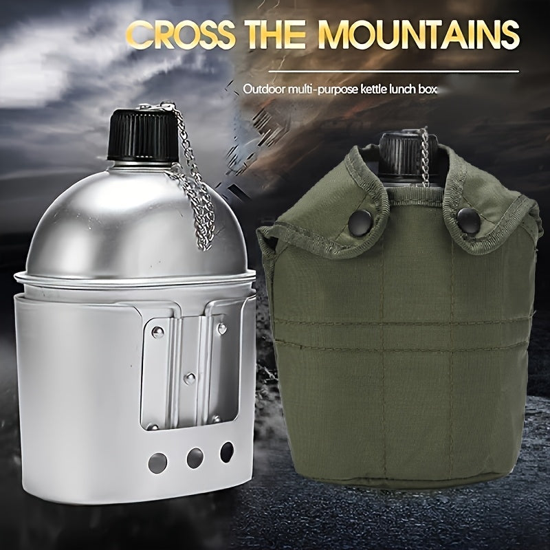Water Canteen Cup Bag Set, Portable Canteen for Outdoor Camping, Survival Nature Experience, Hiking and Backpacking Equipment Only for Cooking - Aluminum
