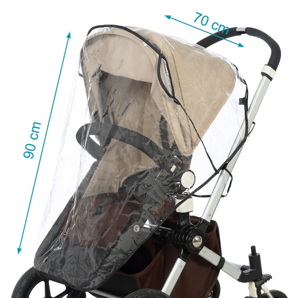 Com a capa de chuva para carrinho da Kiokids, o su bebé estará protegido da chuva.